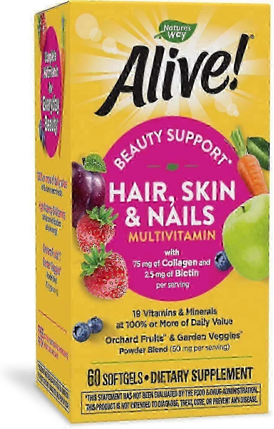 Nature's Way Alive Hair, Skin & Nails, Softgels, Strawberry, 60 Ea