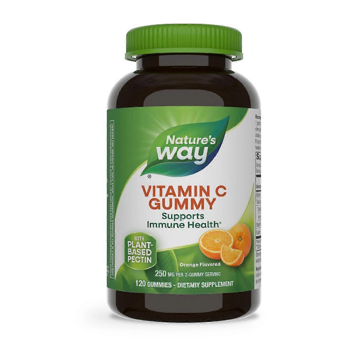Nature's Way Vitamin C Gummies are high potency vitamin C gummies formulated with nearly three times the Daily Value of vitamin C per 2-gummy serving. Vitamin C is an essential antioxidant that supports immune health.* Their vibrant, juicy orange flavor is so delicious, you’ll make taking them a habit in no time. Nature's Way Vitamin C Gummies provide an essential antioxidant that supports immune health.* Formulated with 278% Daily Value of vitamin C per 2-gummy serving. Gummies contain high potency (250 mg) vitamin C, nearly three times the Daily Value, in each 2-gummy serving. Children 4 years and older, chew one gummy daily. Adults, chew two gummies daily. Gluten-free. No gelatin, wheat, or dairy. Made with plant-based pectin, not gelatin. At Nature’s Way, we believe nature is the ultimate problem solver. For over 50 years, we have looked to the natural world for inspiration. Our quality vitamins and supplements are formulated to help you find your way to wellness. Directions: Recommendation: Children 4 years of age and older chew 1 gummy daily. Adults chew 2 gummies daily. Instruct child to chew gummies thoroughly before swallowing. Not formulated for children under 4 years of age. Do not exceed recommended dose. Ingredients: Other Ingredients: Glucose Syrup, Sugar, Purified Water, Pectin, Sodium Citrate, Natural Flavors, (Color) Annatto