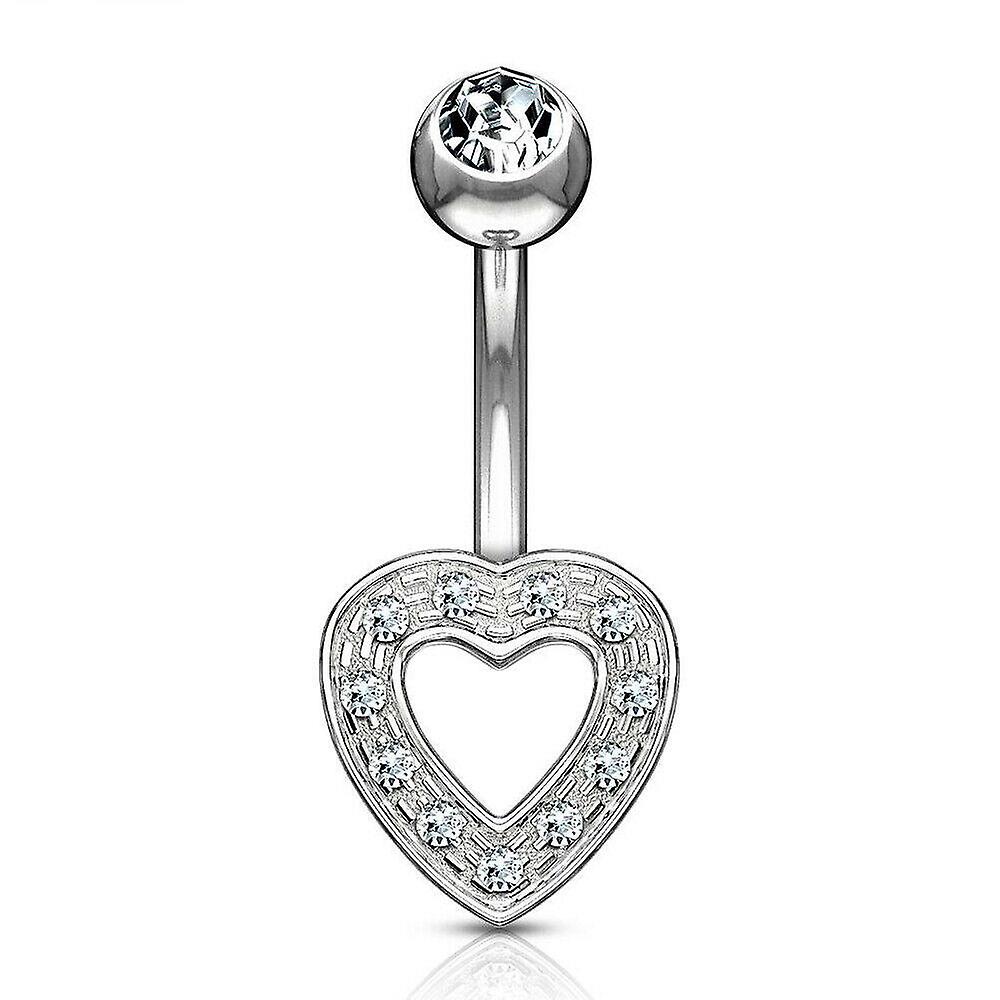 Navel ring 14 karat solid gold with clear cz heart charm 14ga