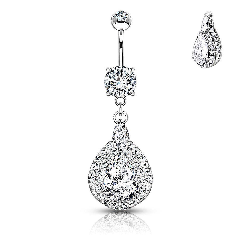 Navel ring 14kt solid gold three tiered tear drop design with cubic zirconia 14g