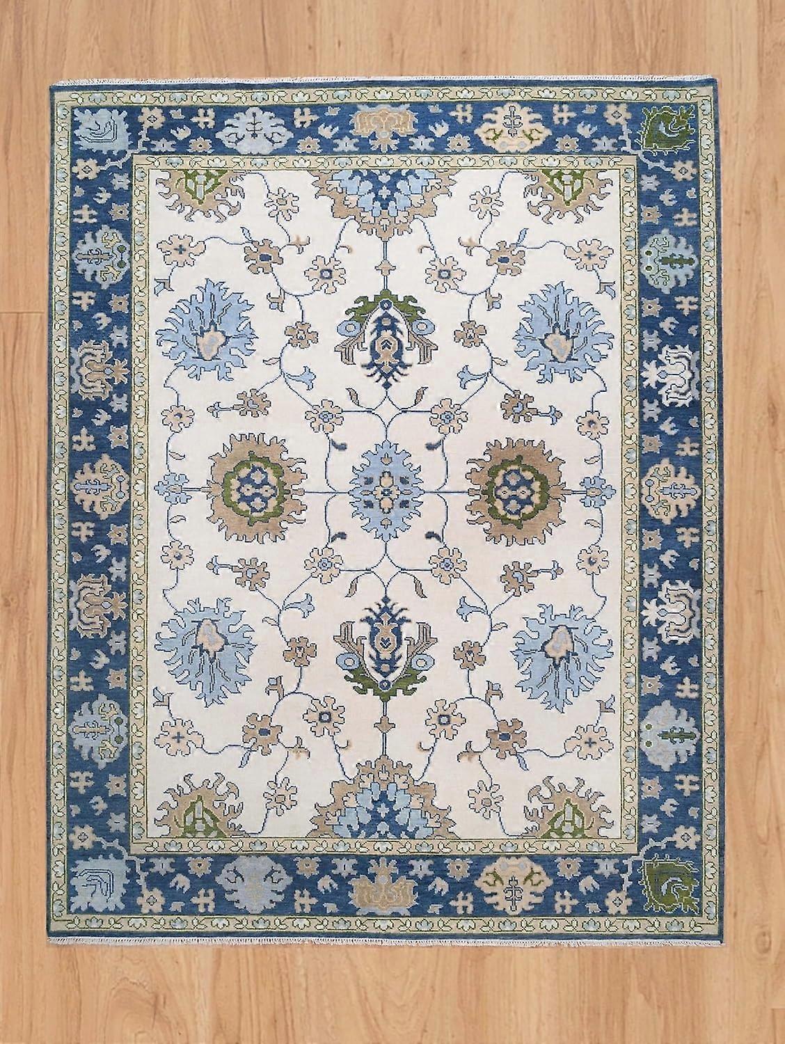 Navy Blue Turkish Oushak Hand Knotted Rug For Bedroom & Living Room