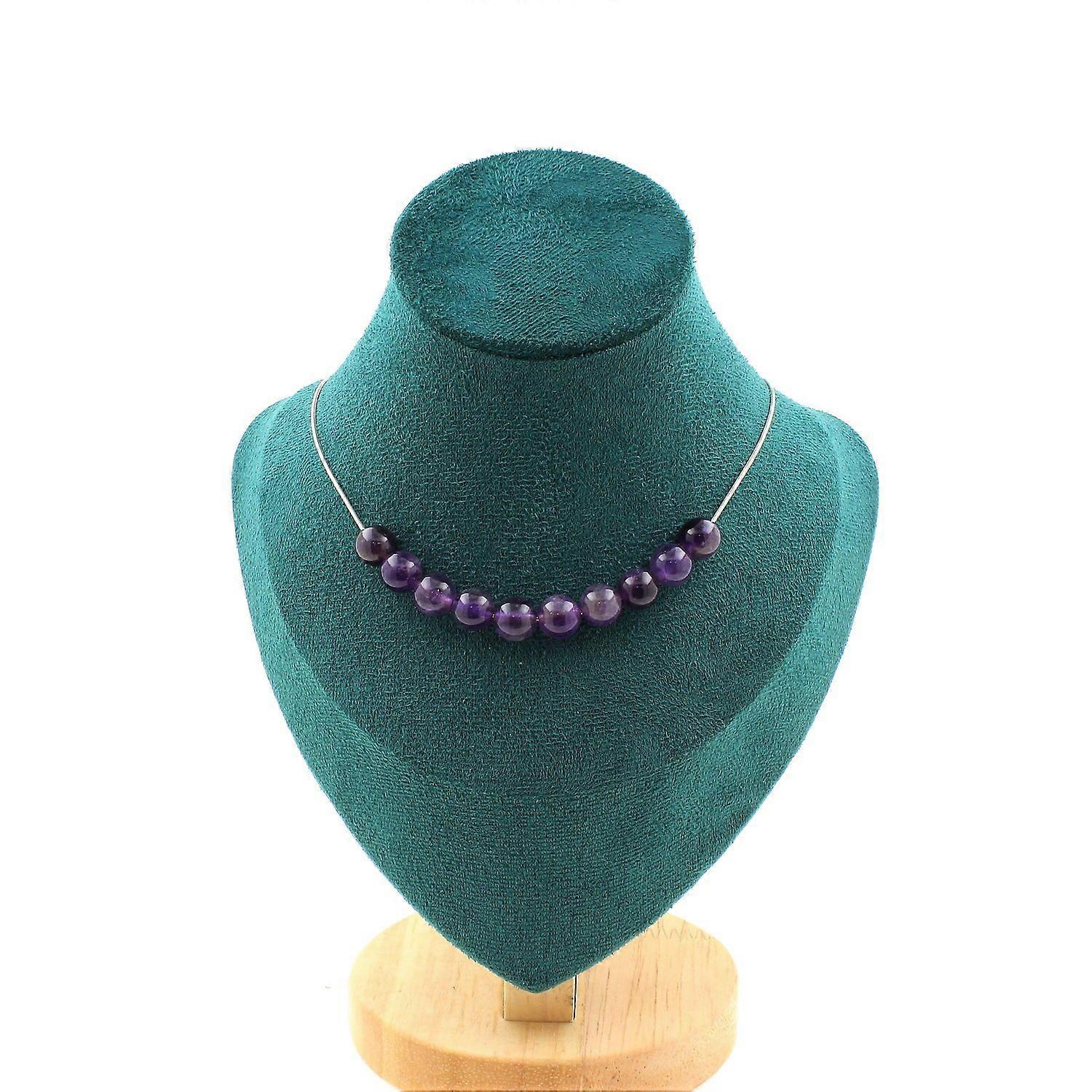Necklace 10 Amethyst beads 8 mm Stainless steel chain