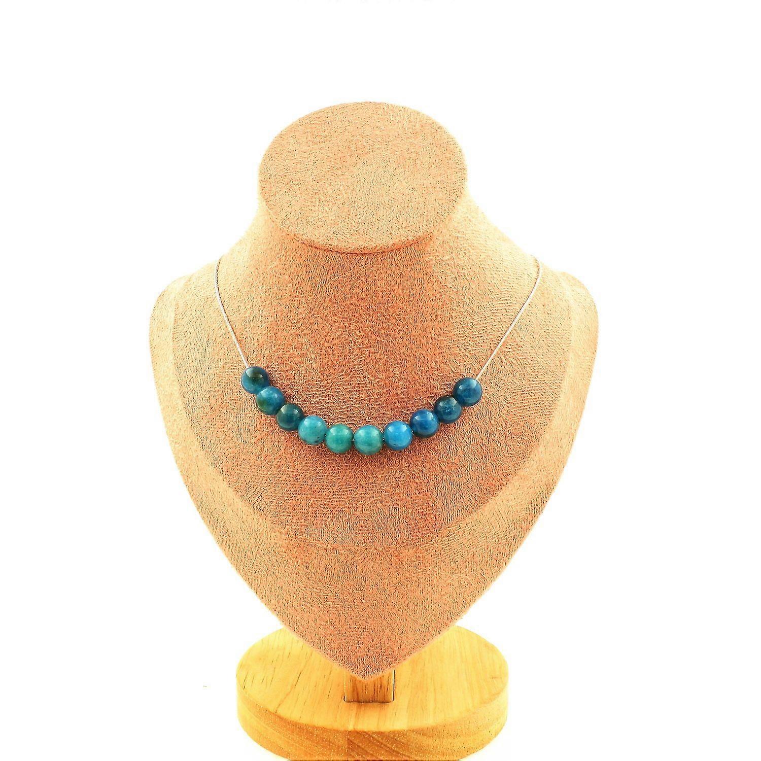 Necklace with 10 Apatite beads 8 mm, stainless steel chain, length 45 cm. Made in France in the A Bijoux workshop. Delivered in a box pouch. Necklace for women, men, children. Ref. : SKU054858_10. Jewelry worn around the neck, often made of precious metals or adorned with precious and semi-precious stones.