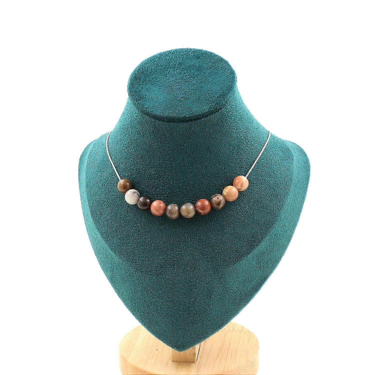 Necklace 10 beads Petrified wood 8 mm Stainless steel chain