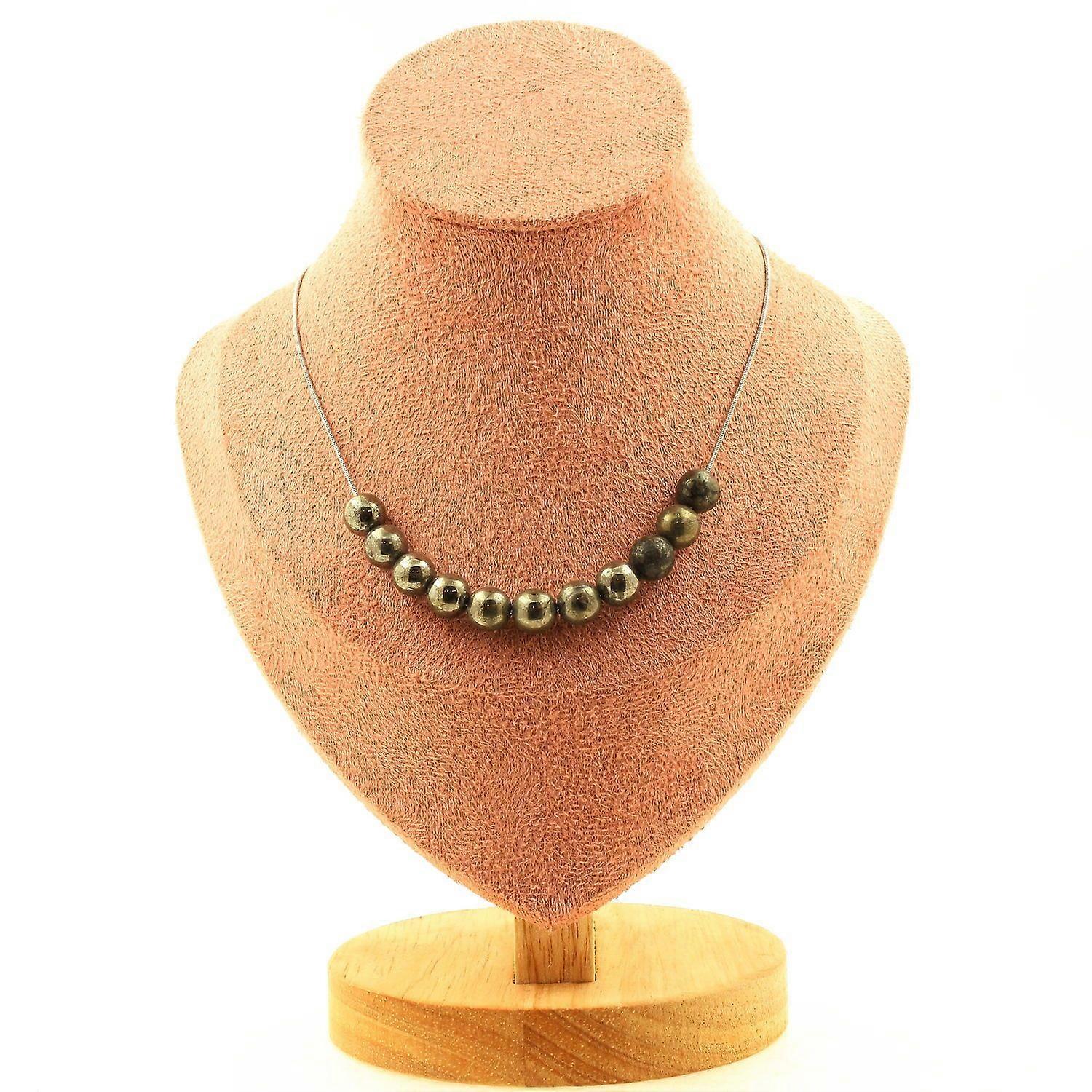 Necklace 10 Spanish Pyrite beads 8 mm Stainless steel chain