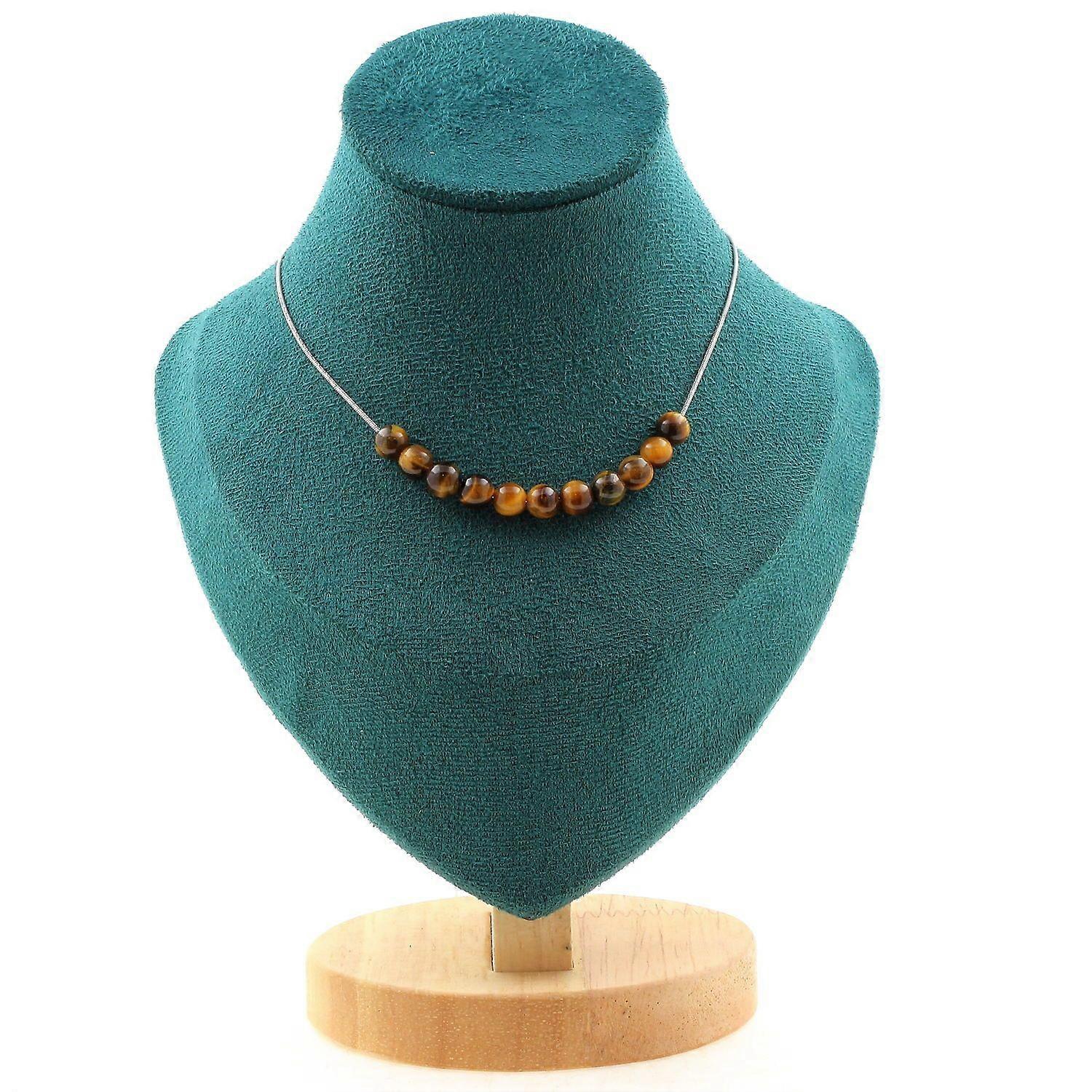 Necklace 10 Tiger Eye beads 6 mm Stainless steel chain