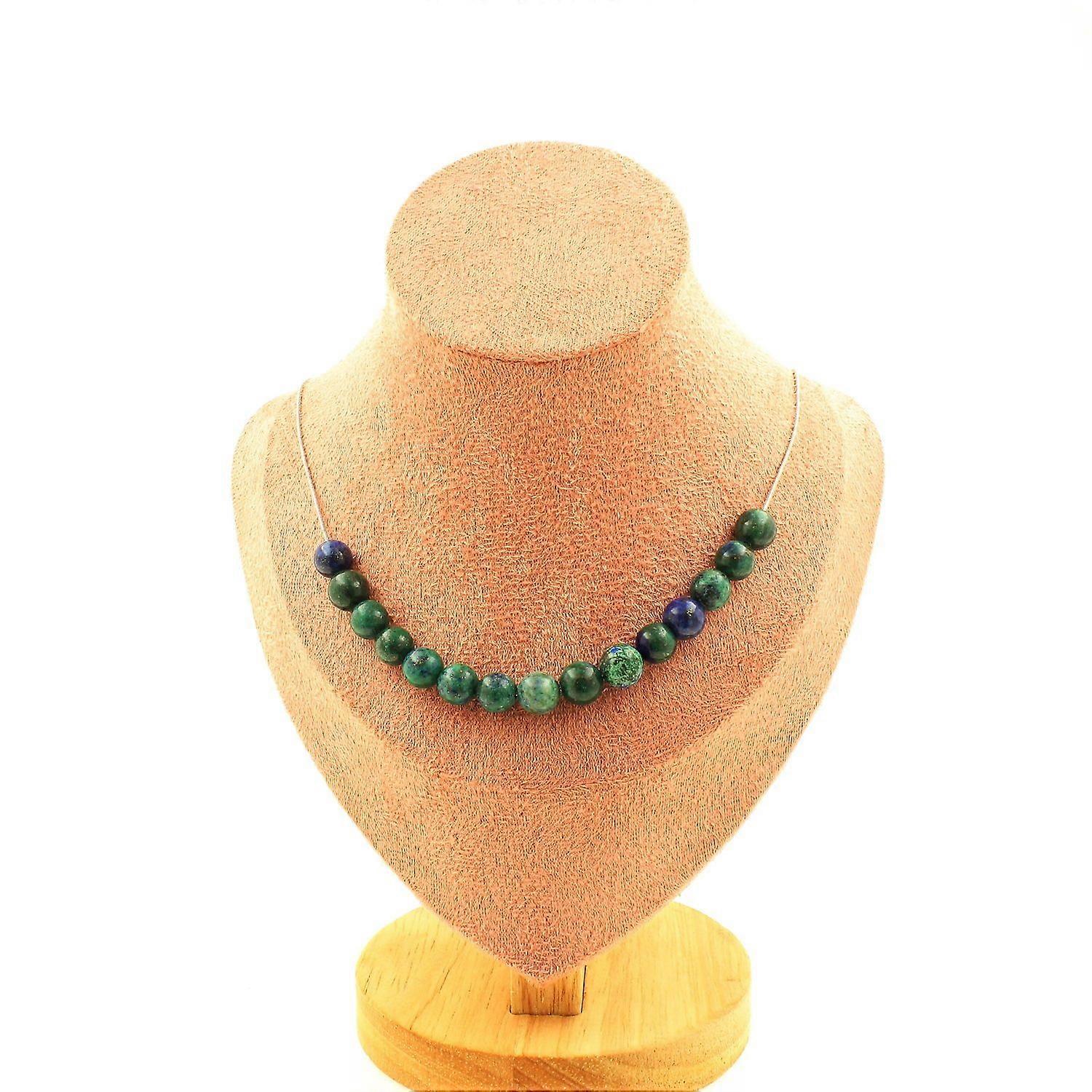 Necklace 15 Azurite Chrysocolla beads 8 mm Stainless steel chain