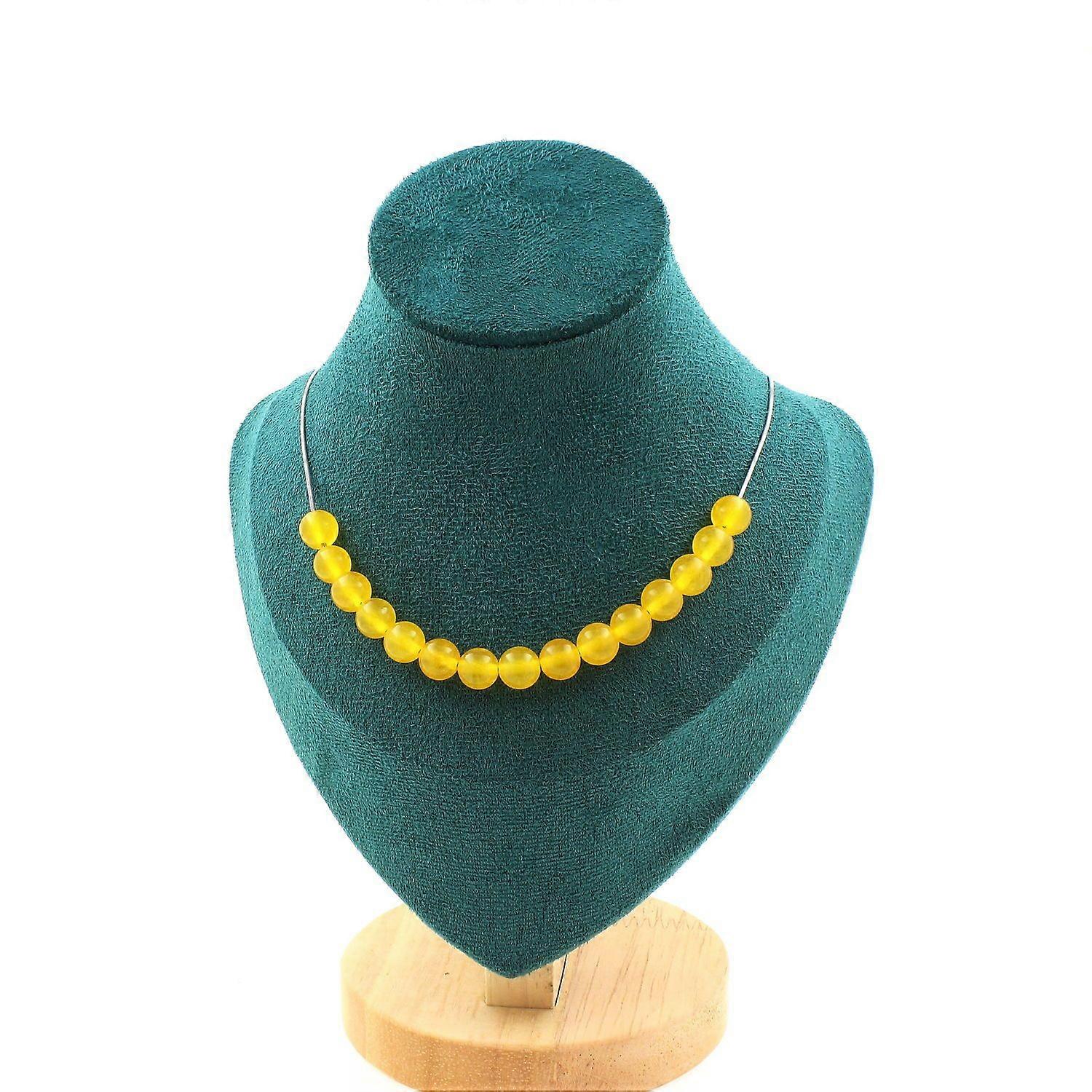 Necklace 15 beads Yellow Agate 8 mm Stainless steel chain