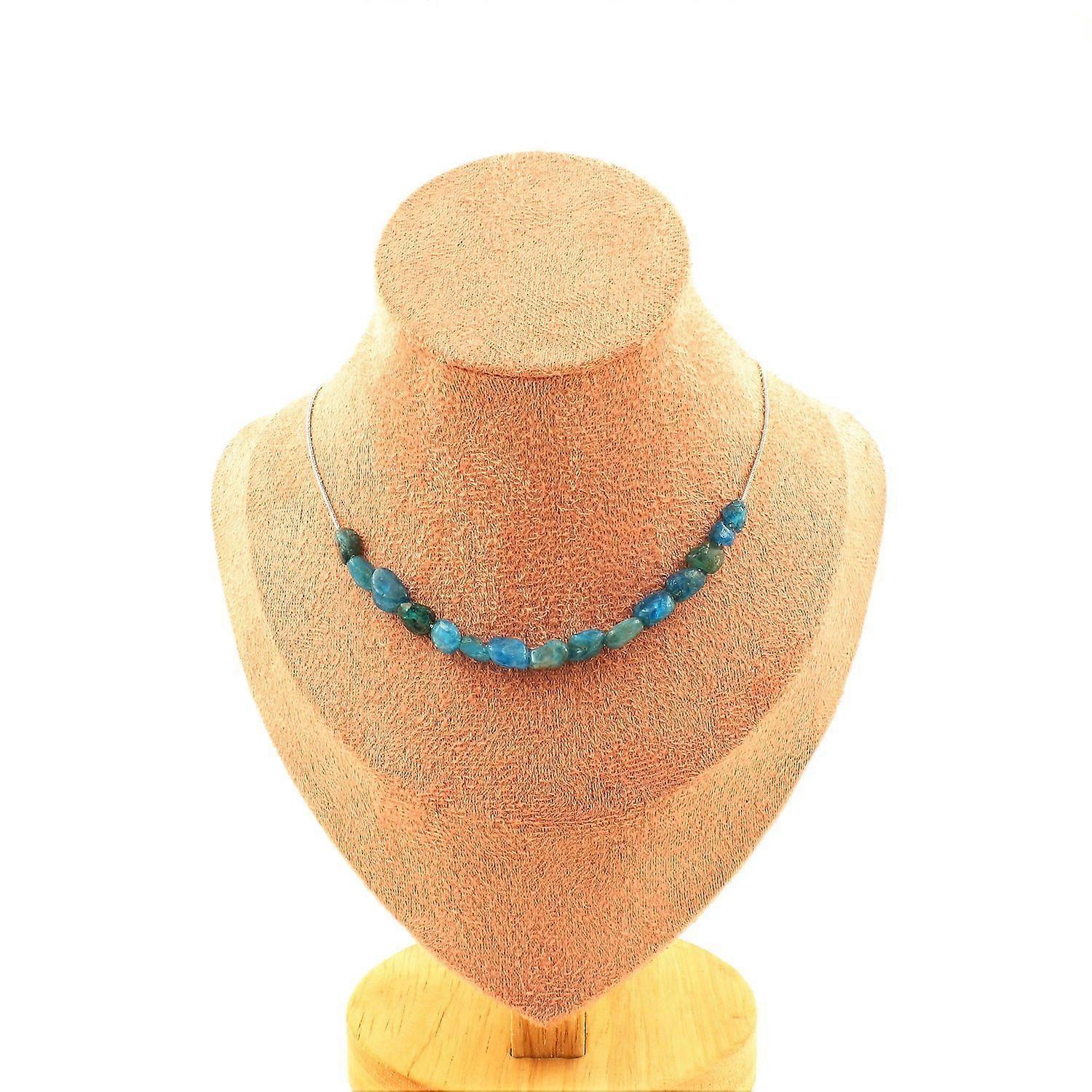 Necklace 15 blue Apatite beads from Brazil Stainless steel chain