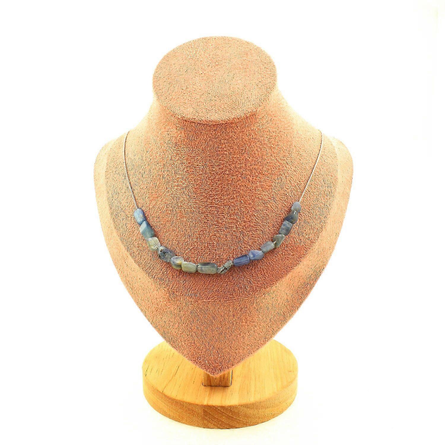 Necklace 15 blue Kyanite beads from Brazil Stainless steel chain