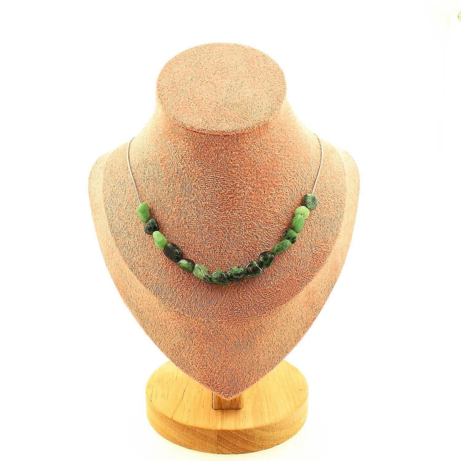 Necklace 15 Epidote pearls from Myanmar (Burma) Stainless steel chain