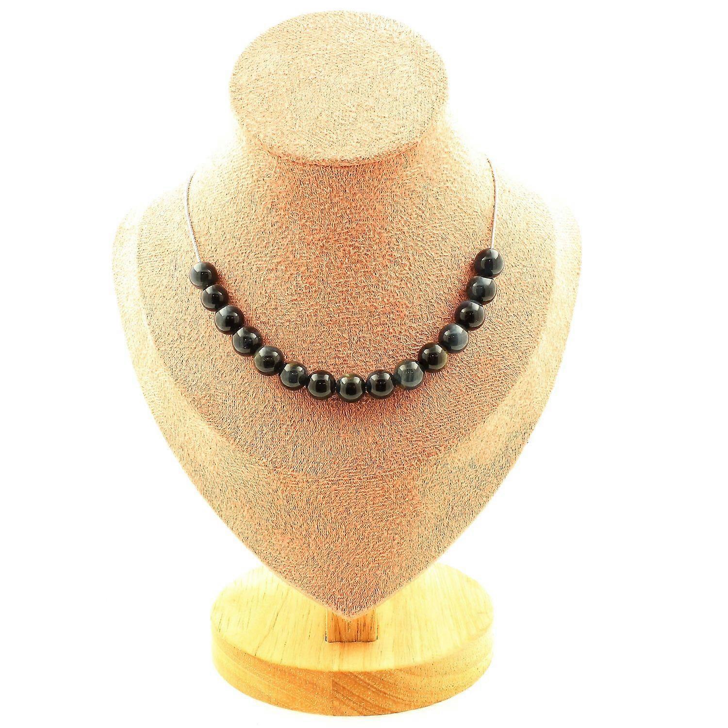 Necklace 15 pearls Hawk's eye 8 mm Stainless steel chain