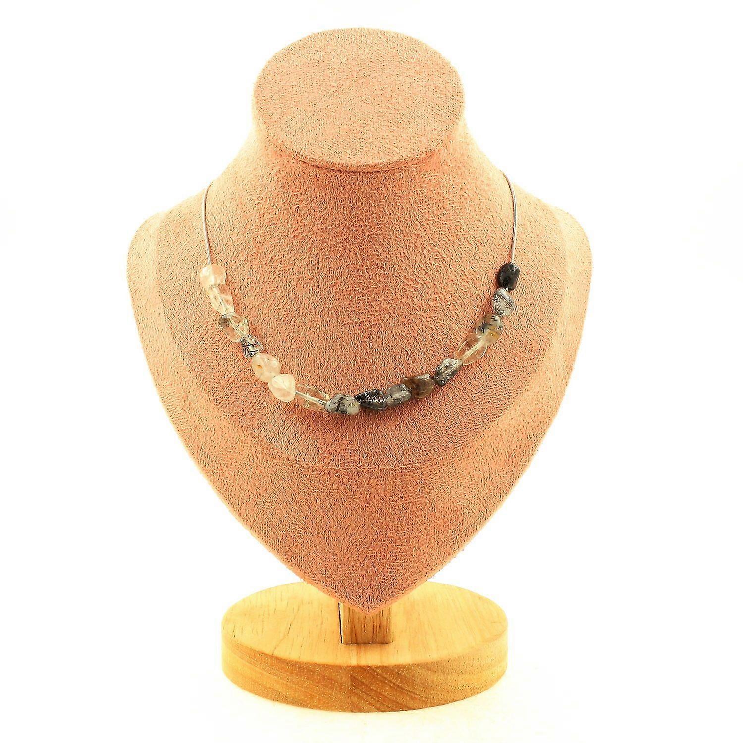 Necklace 15 Quartz beads with Tourmaline inclusions from Brazil Stainless steel chain