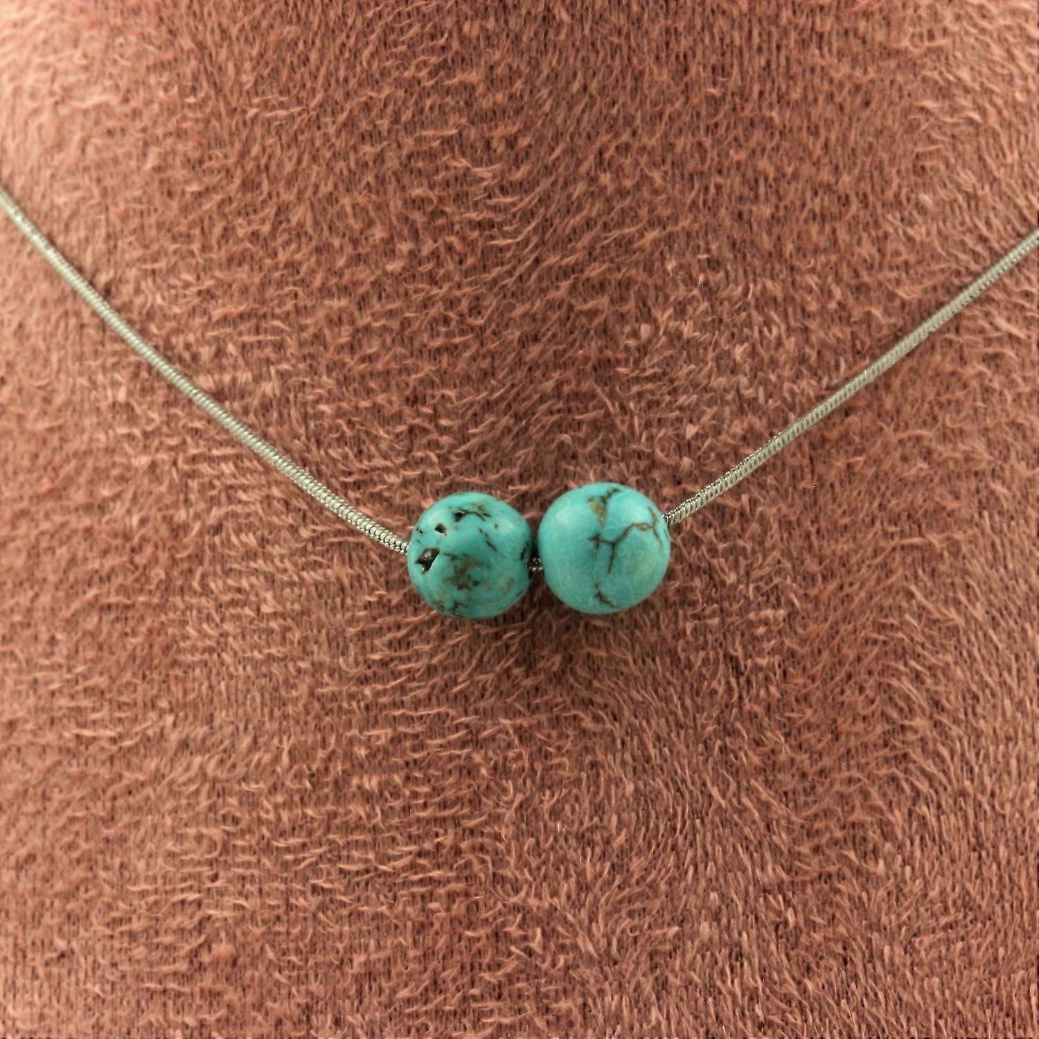 Necklace 2 Howlite Turquoise beads 8 mm Stainless steel chain