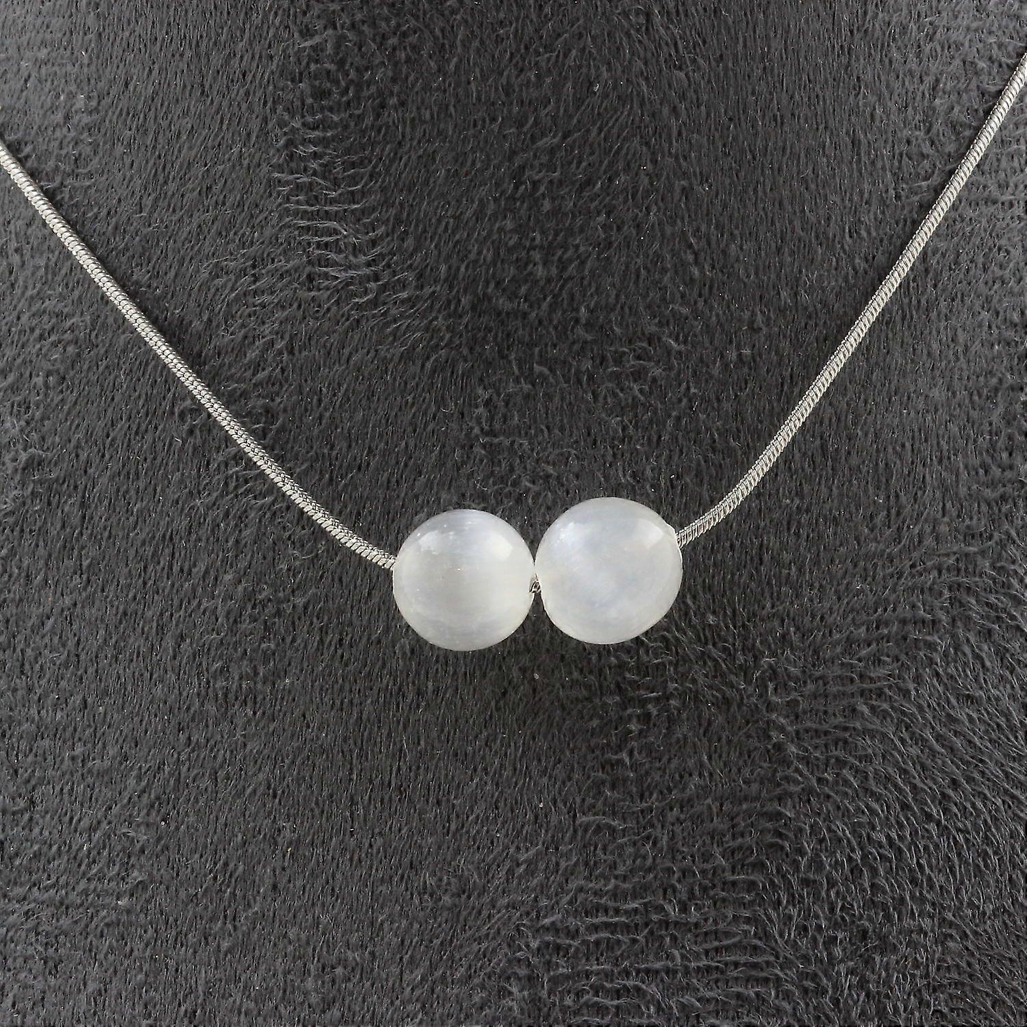 Necklace 2 Selenite beads from Morocco 8 mm Stainless steel chain