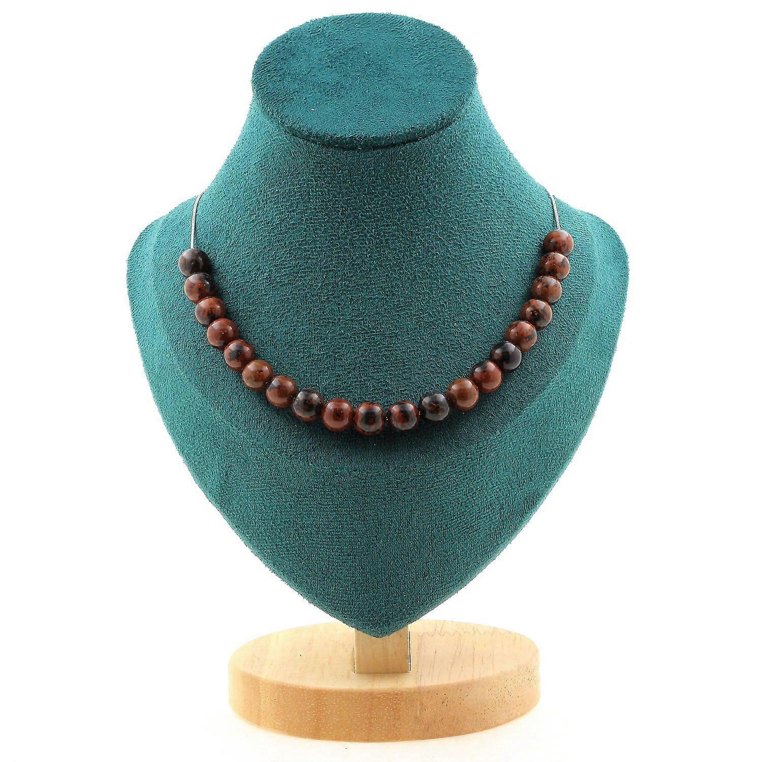 Necklace 20 beads Obsidian mahogany 8 mm Stainless steel chain