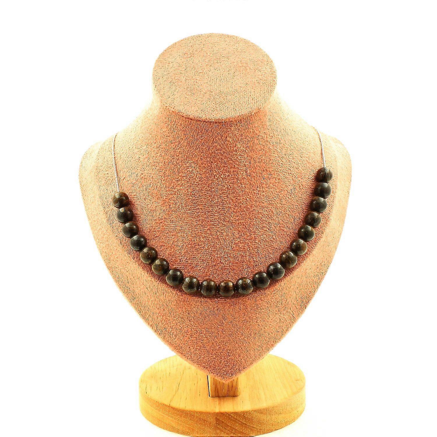 Necklace 20 Bronzite beads 8 mm Stainless steel chain
