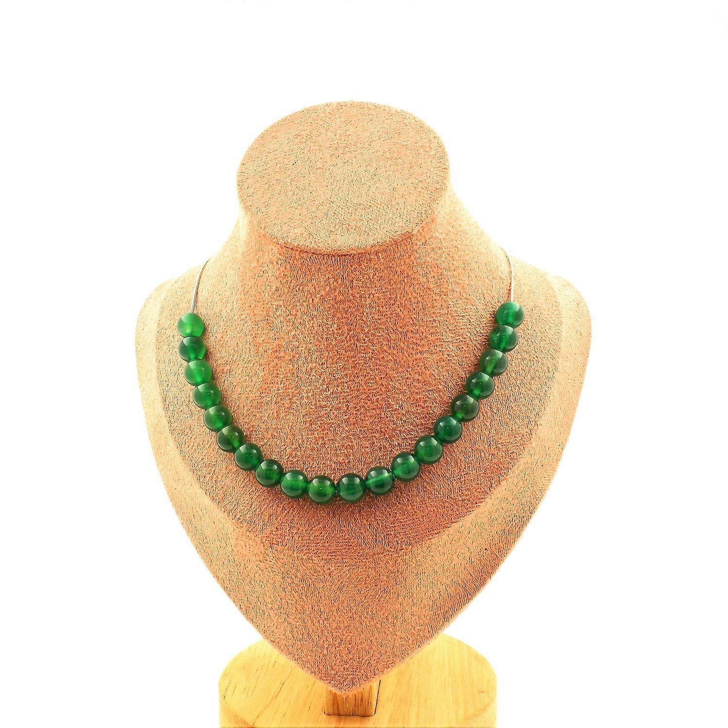 Necklace 20 green Agate beads 8 mm Stainless steel chain