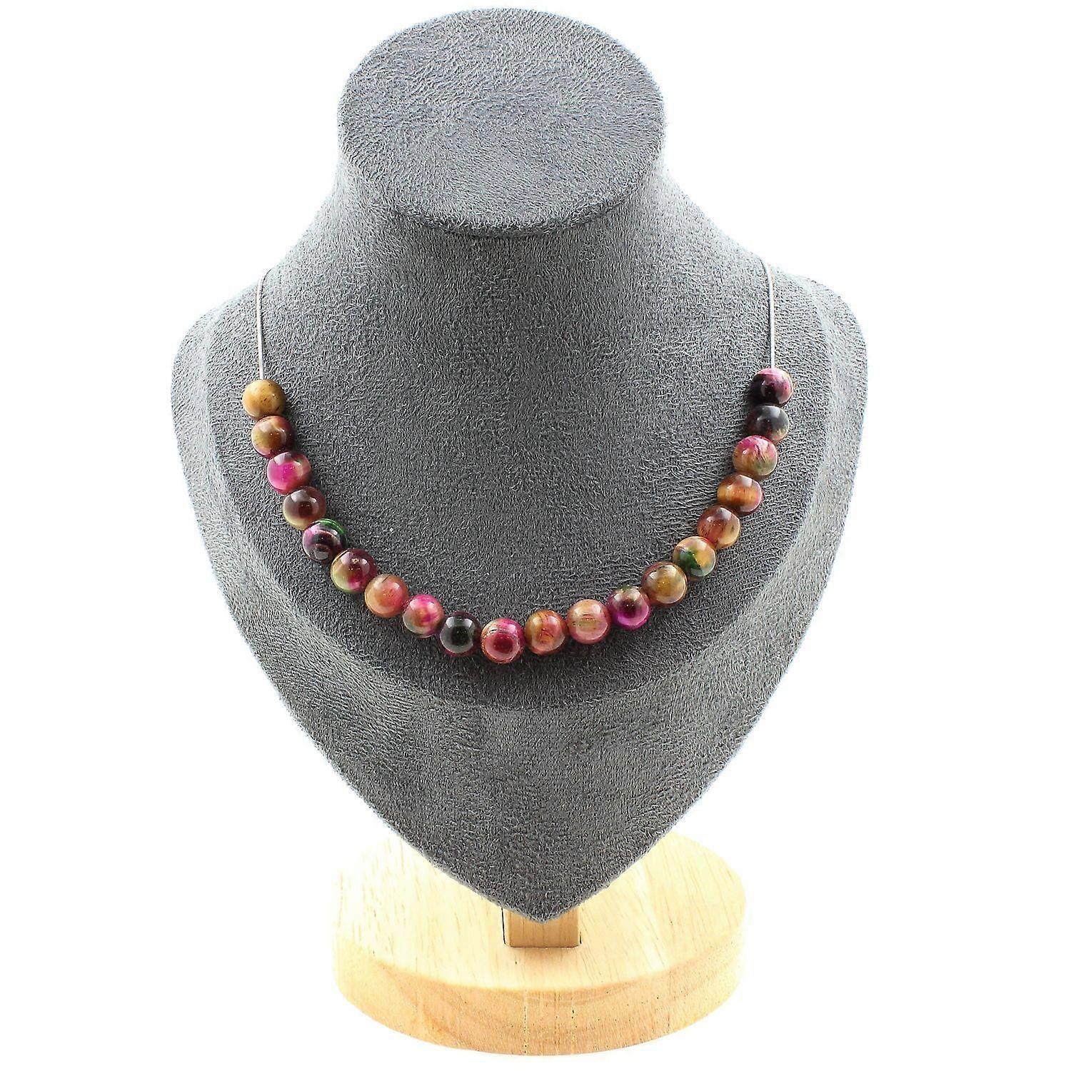 Necklace 20 Tiger Eye beads Fuschia Bicolor 8 mm Stainless steel chain