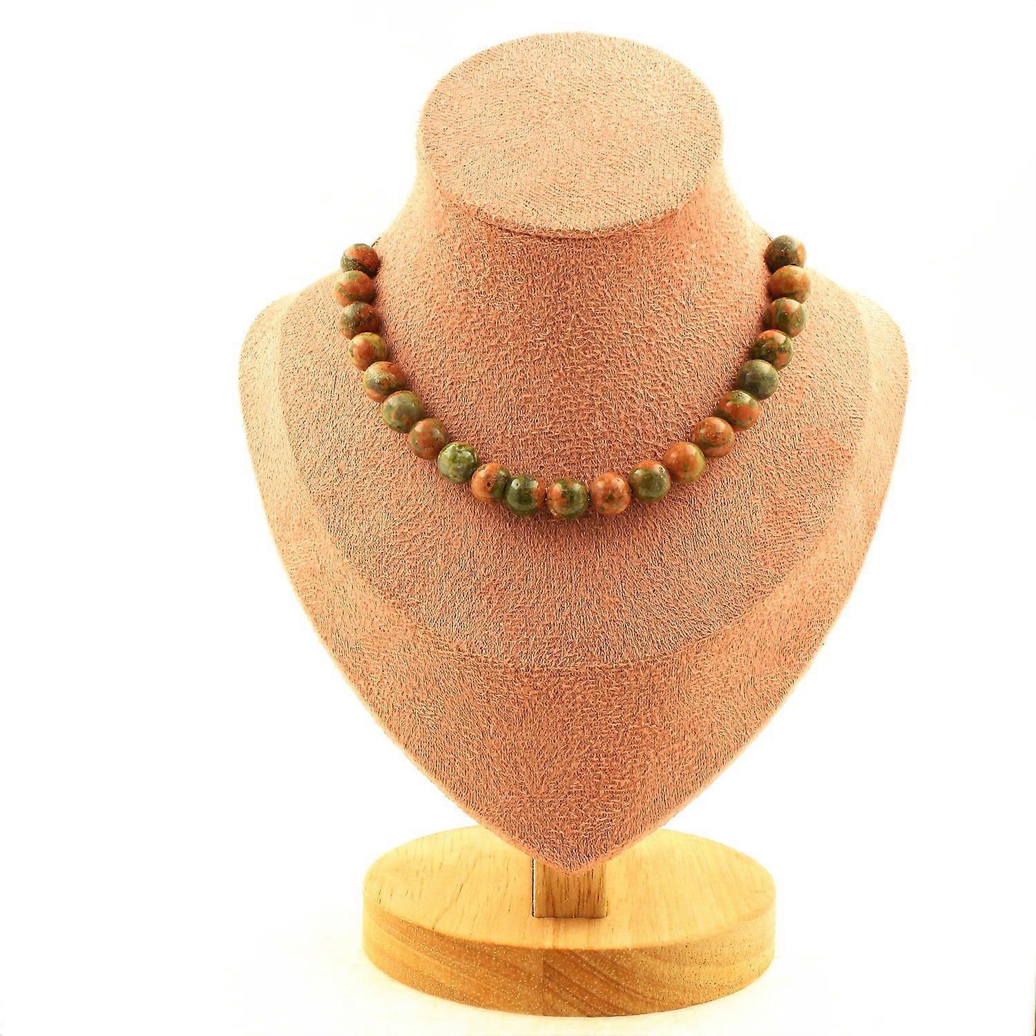 Necklace 20 Unakite beads 8 mm Stainless steel chain