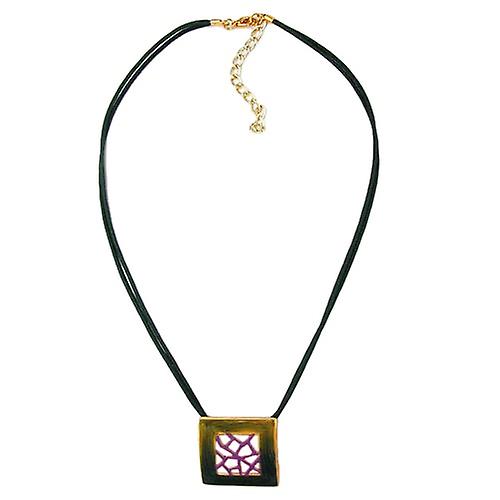 Kette 27x30mm Metallanhänger Viereck goldfarben grün-lila emailliert Kordel grün 42cm