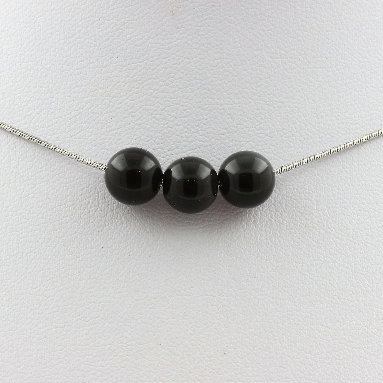 Necklace 3 beads Black Obsidian 8 mm Stainless steel chain