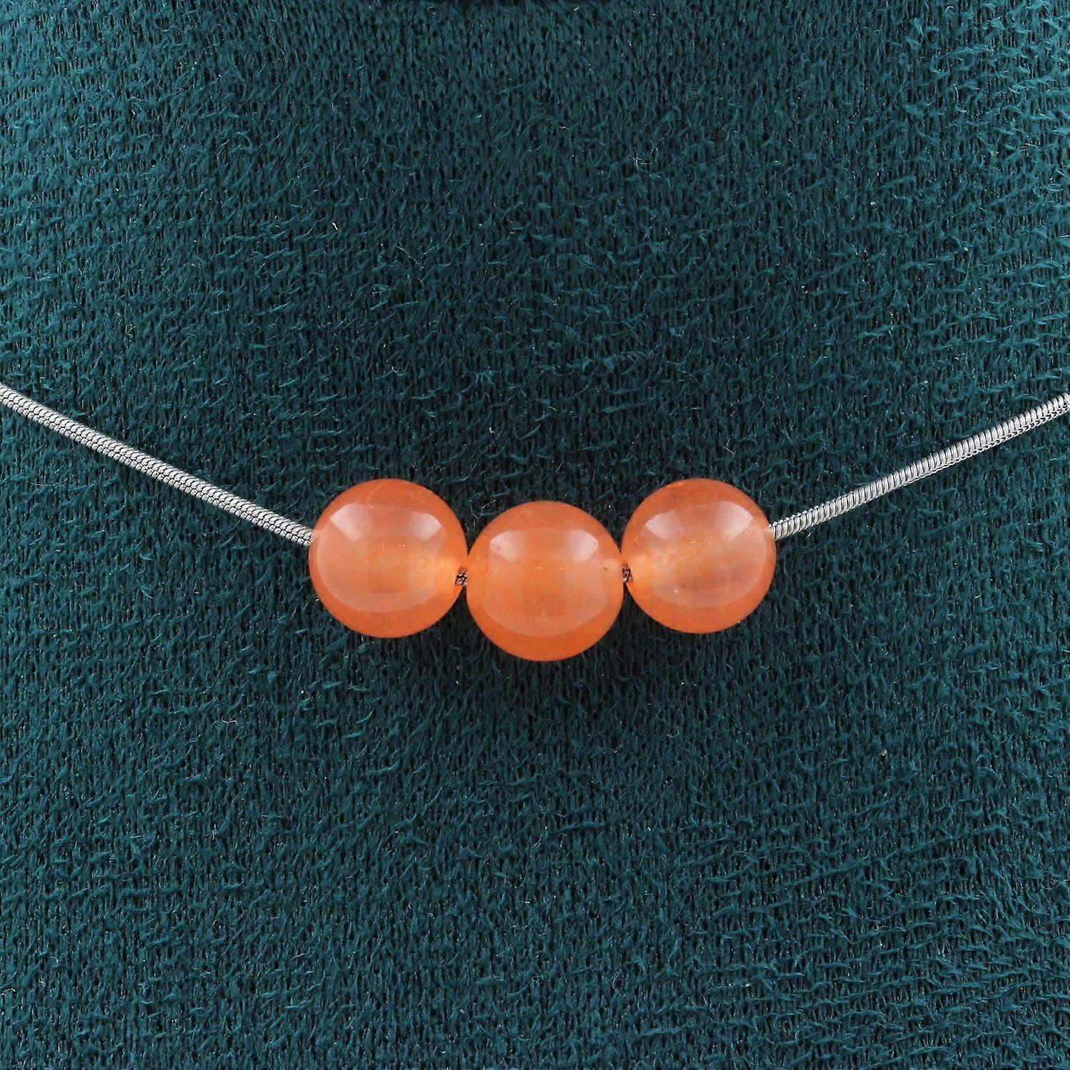 Necklace 3 orange chalcedony beads 8 mm Stainless steel chain