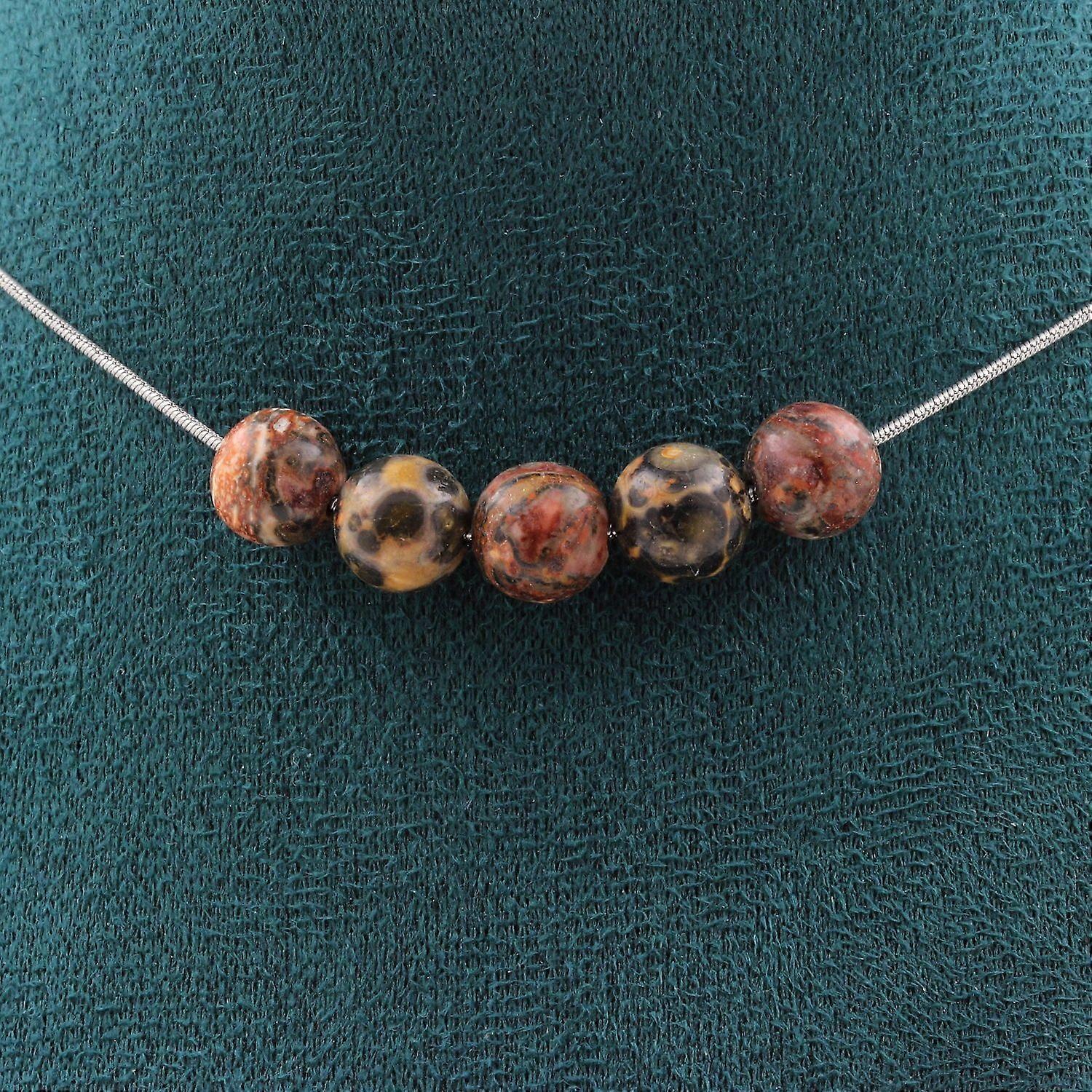 Necklace 5 beads Leopard jasper 8 mm Stainless steel chain