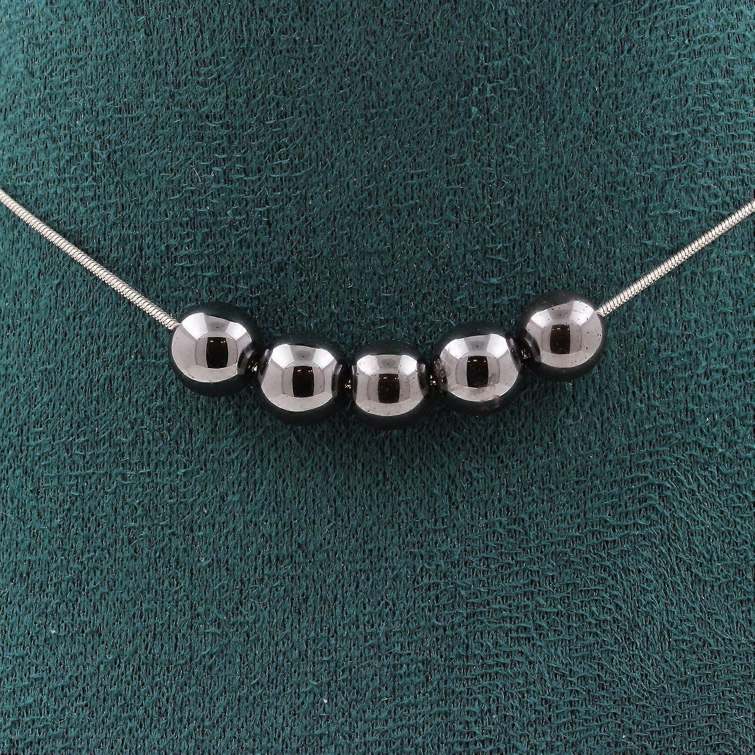 Necklace 5 Hematite beads 8 mm Stainless steel chain