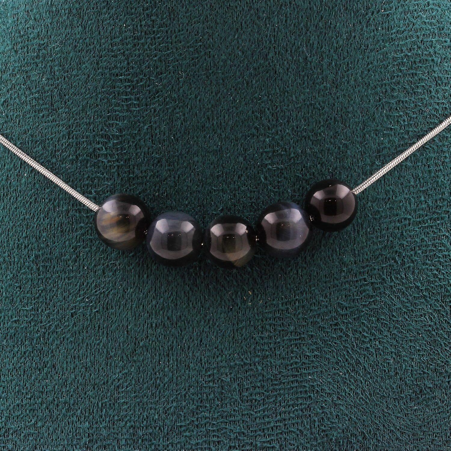 Necklace 5 pearls Hawk's eye 8 mm Stainless steel chain