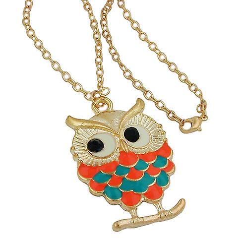 Kette Eule auf Ast 47x35mm orange-blau 70cm