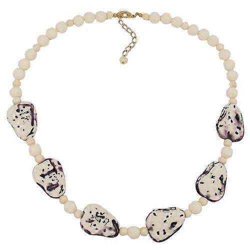 Kette Kunststoffperlen Steinperle elfenbein-lila 53cm