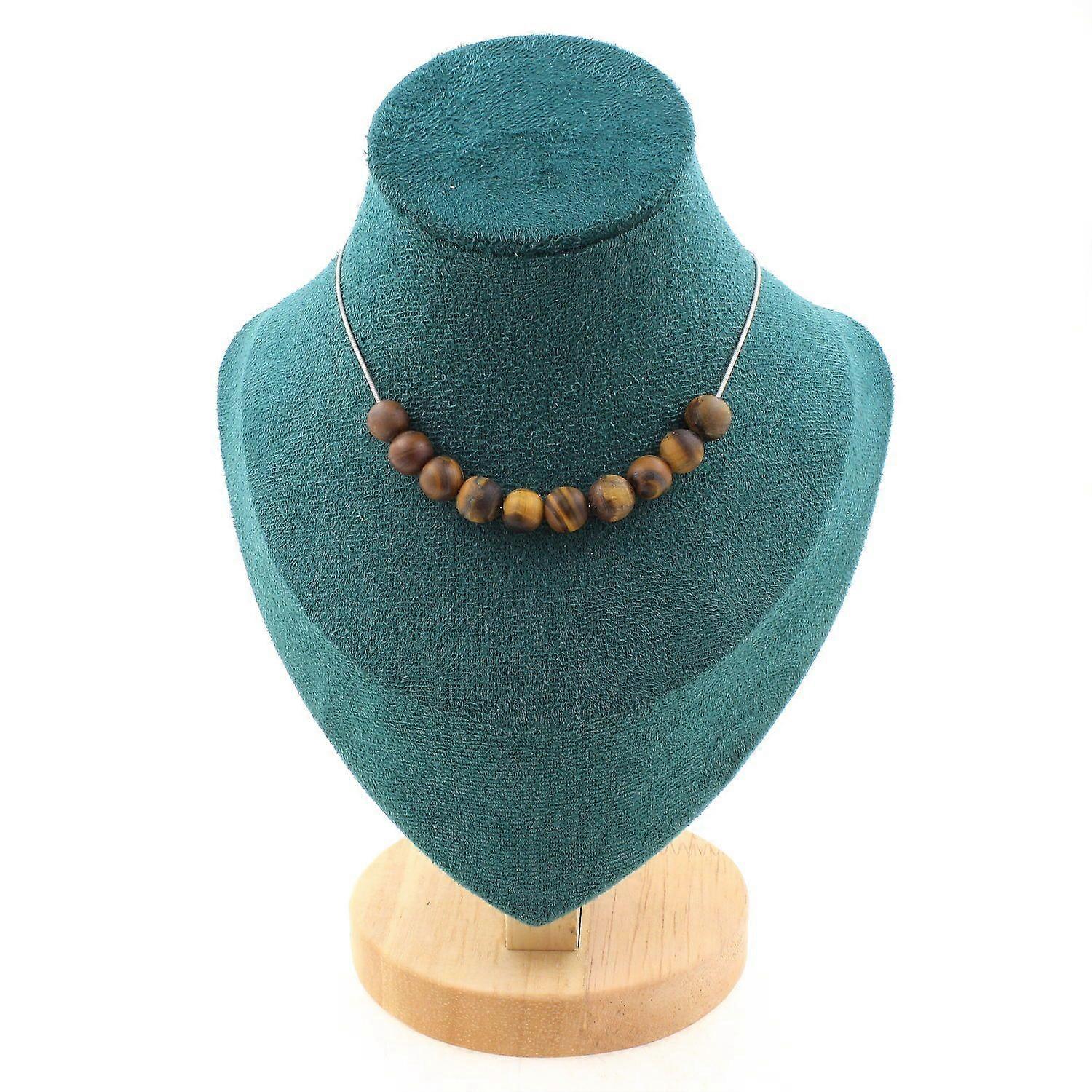 Necklace with 10 matte Tiger's Eye beads 8 mm, stainless steel chain