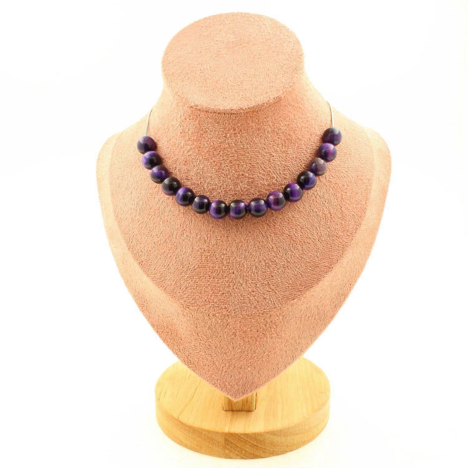 Necklace with 15 purple Tiger's Eye beads 8 mm, stainless steel chain