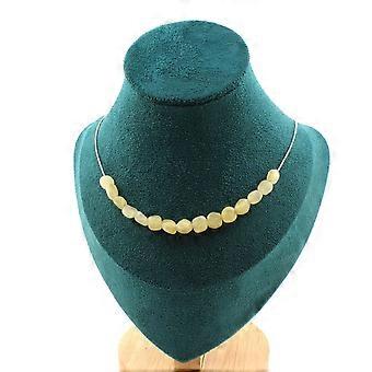 Necklace with 15 yellow Calcite beads from the United Kingdom, stainless steel chain