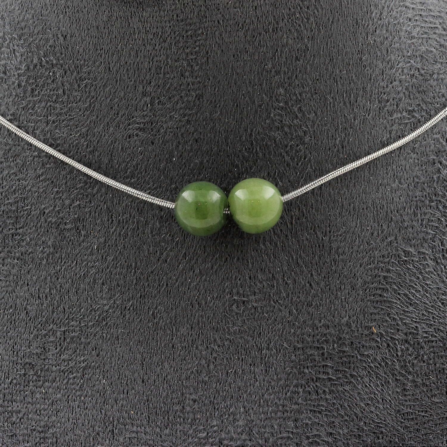 Necklace with 2 Jade pearls 8 mm Stainless steel chain