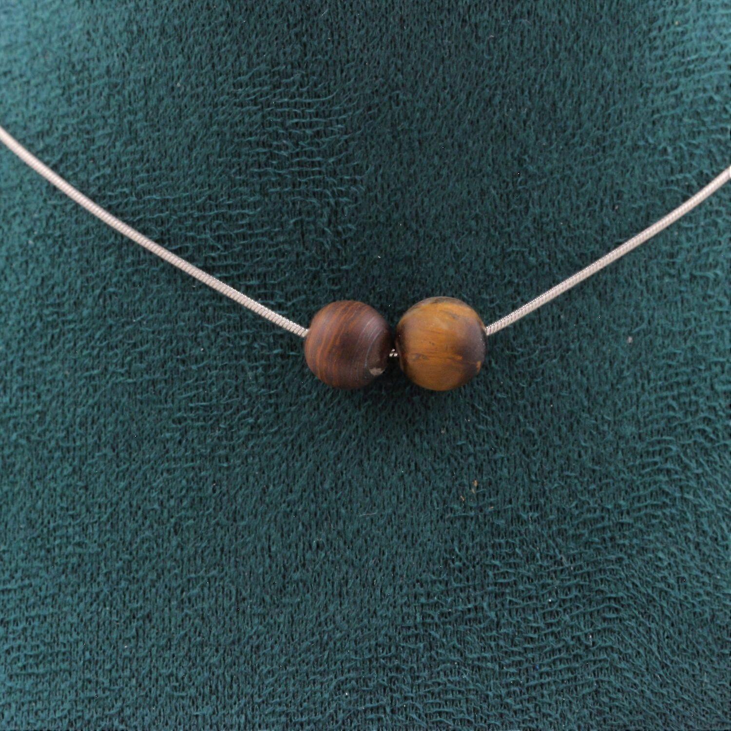 Necklace with 2 matte Tiger's Eye beads 8 mm, stainless steel chain