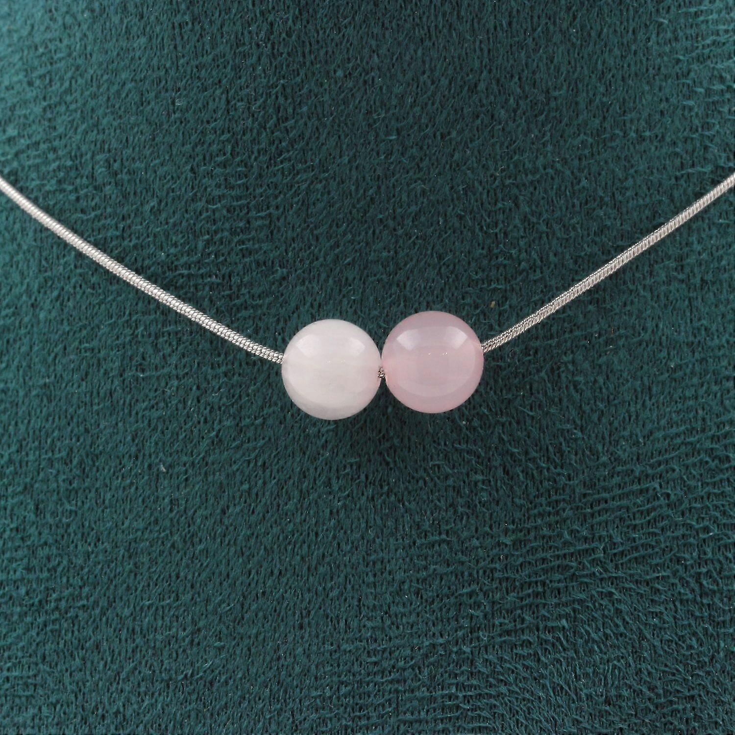 Necklace with 2 pink quartz beads 8 mm, stainless steel chain