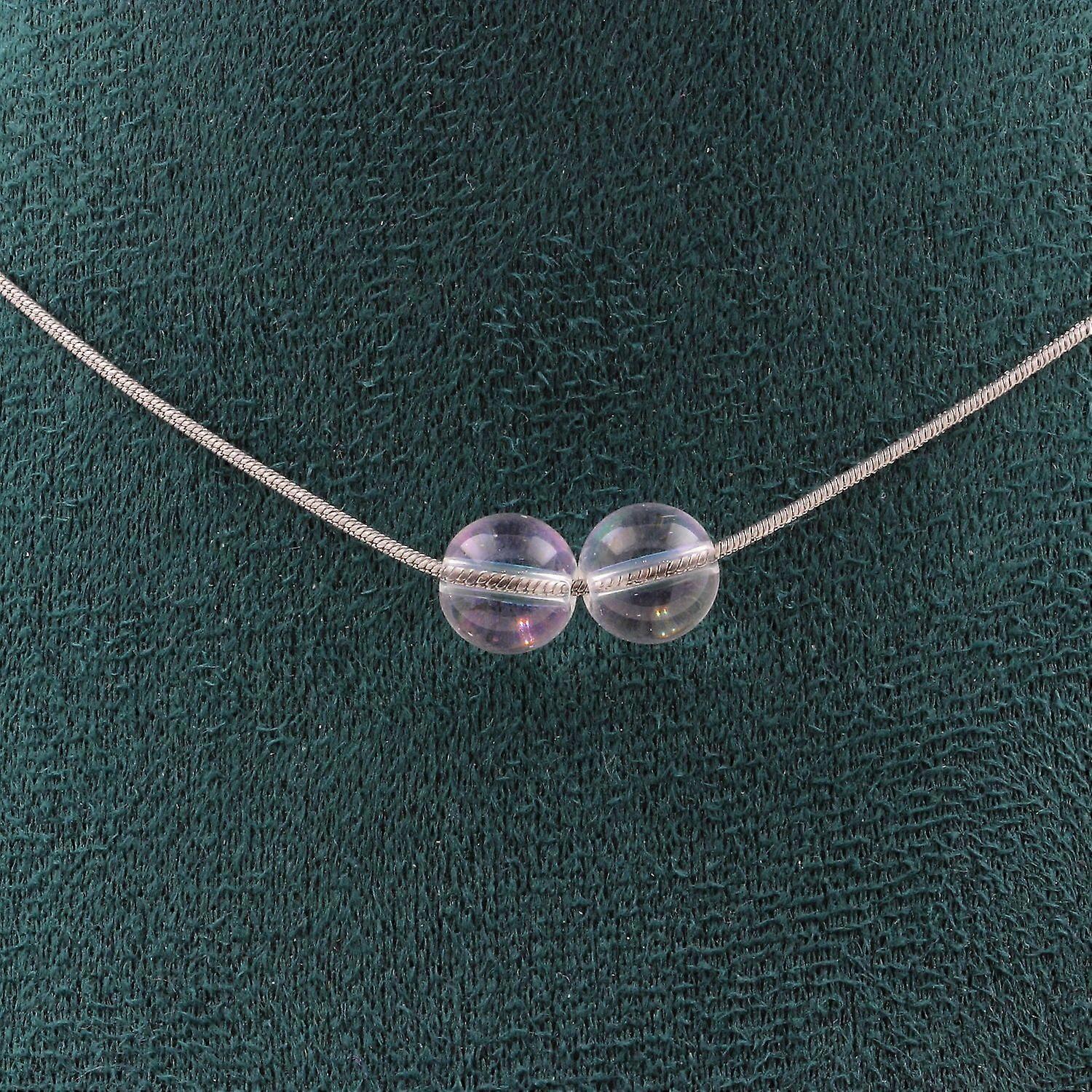 Necklace with 2 Quartz Titanium beads 8 mm Stainless steel chain