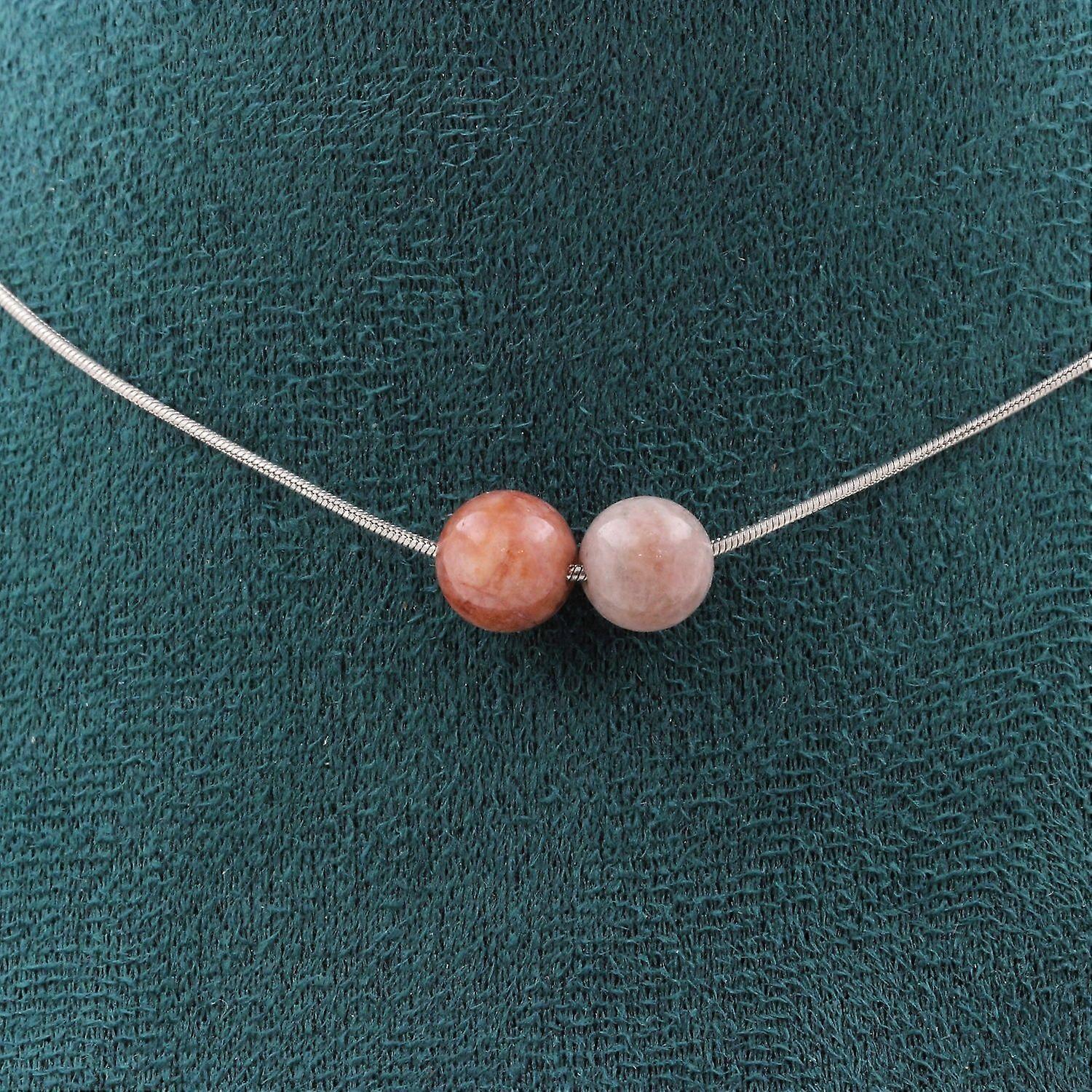 Necklace with 2 sunstone beads 8 mm Stainless steel chain