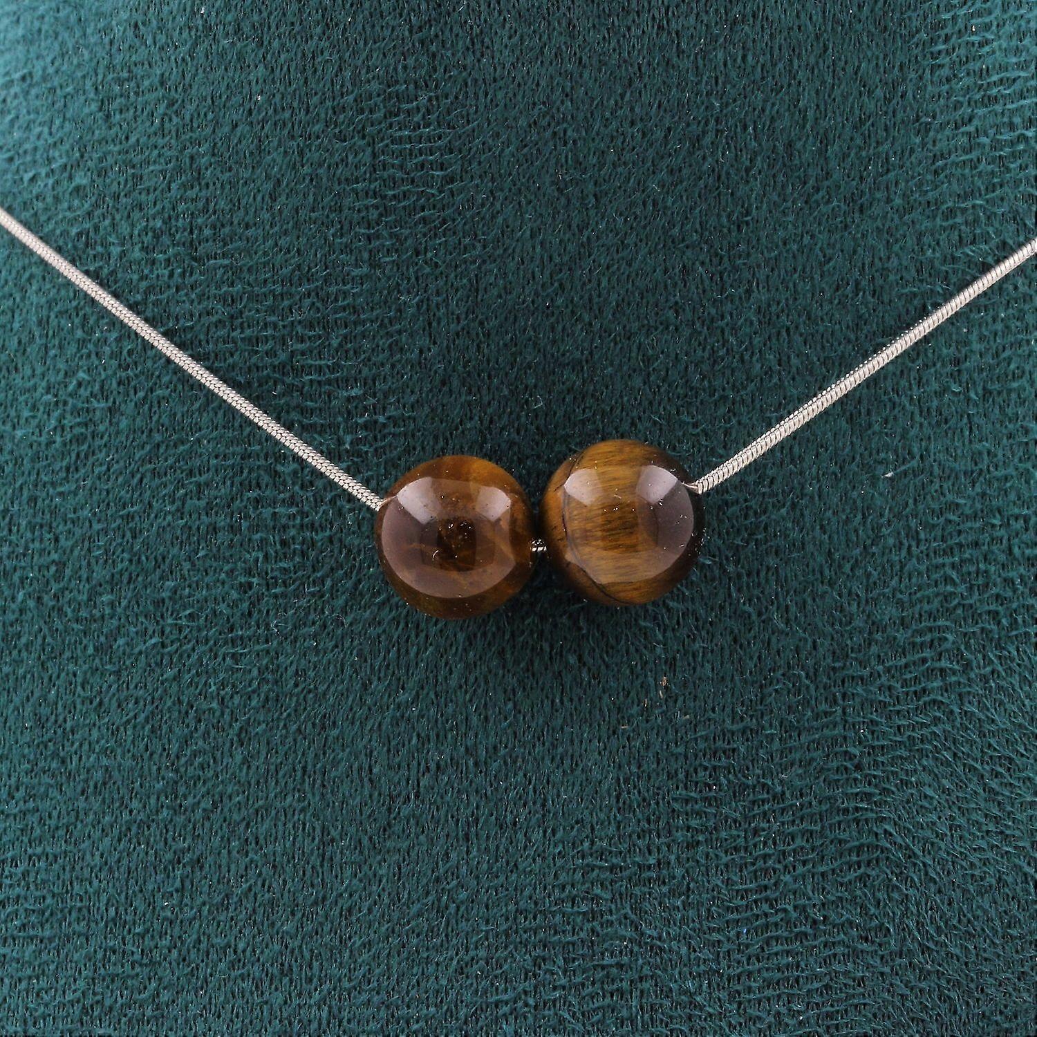 Necklace with 2 Tiger Eye beads 10 mm Stainless steel chain