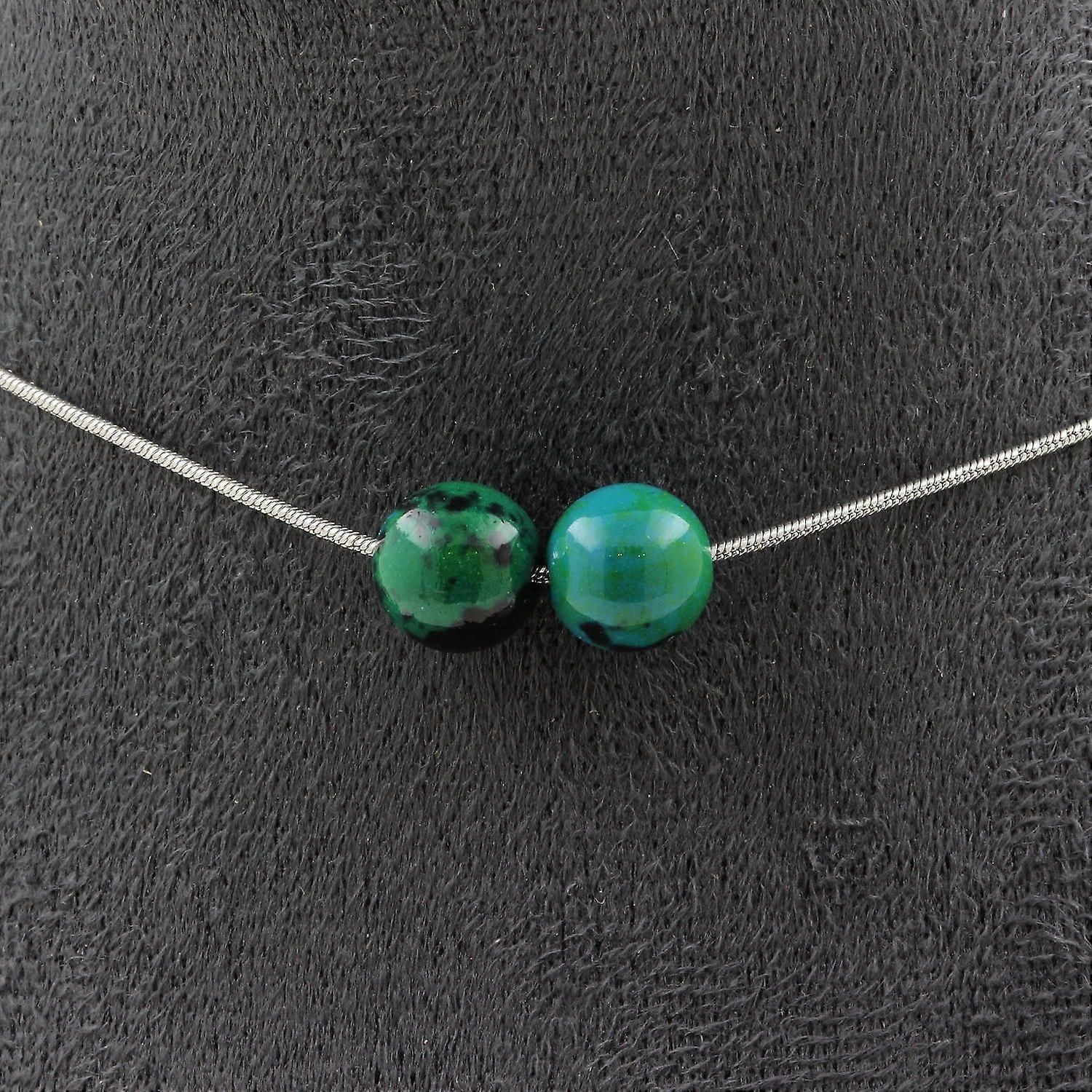 Necklace with 2 Tinted Chrysocolla beads 8 mm Stainless steel chain