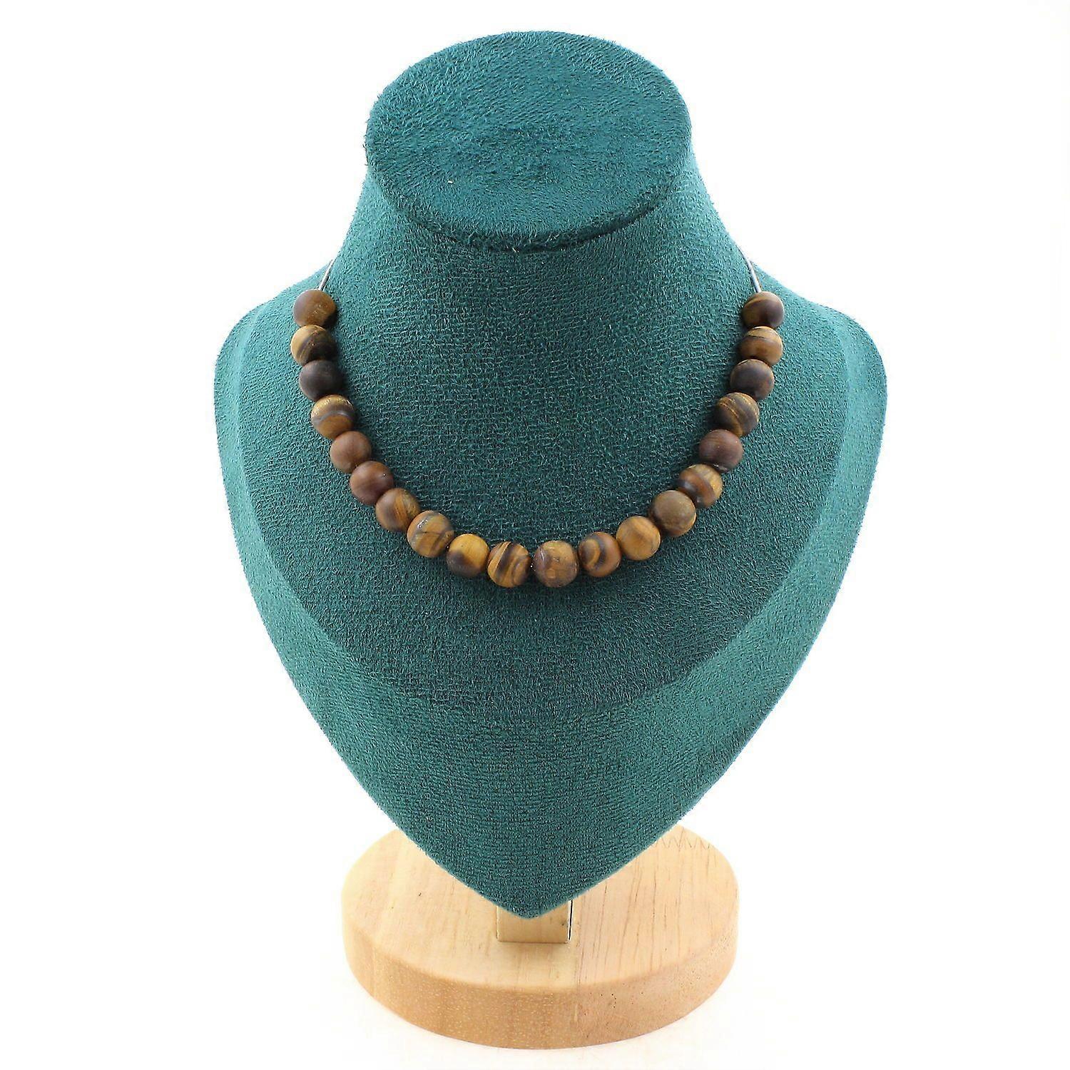 Necklace with 20 matte Tiger's Eye beads 8 mm, stainless steel chain