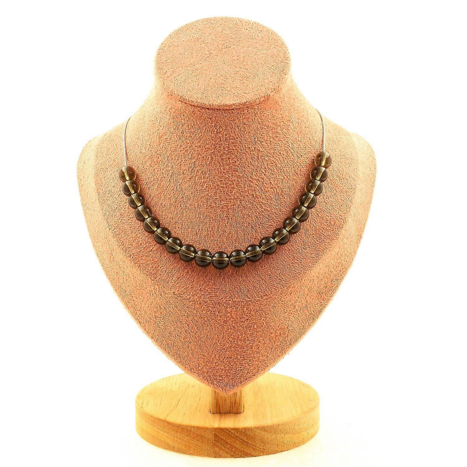 Necklace with 20 smoky quartz beads 8 mm, stainless steel chain