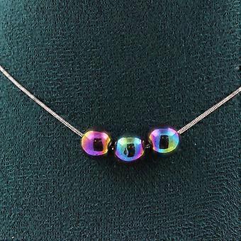 Necklace with 3 multicolored Hematite beads 8 mm, stainless steel chain