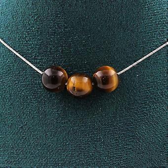 Necklace with 3 Tiger Eye beads 10 mm Stainless steel chain