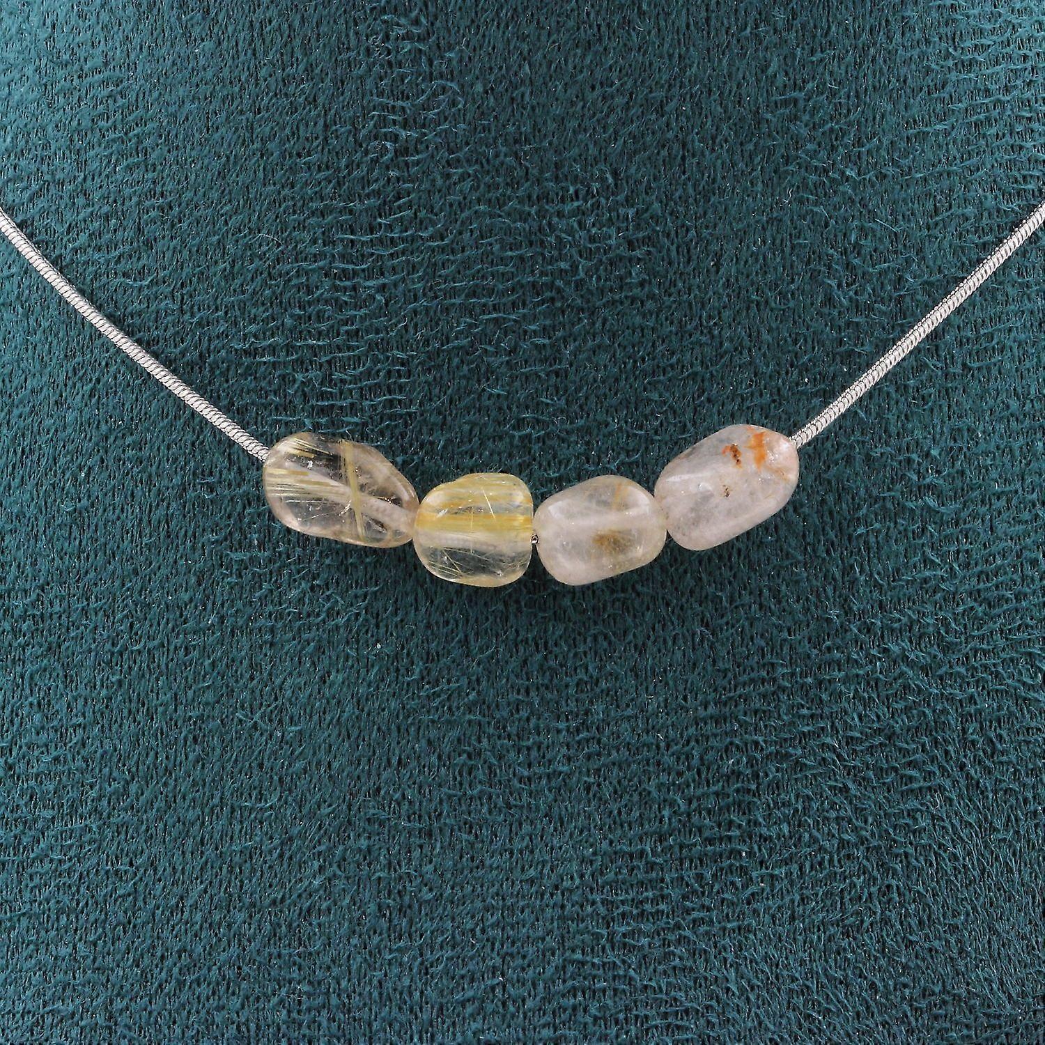 Necklace with 4 Golden Rutile Quartz beads from Brazil Stainless steel chain