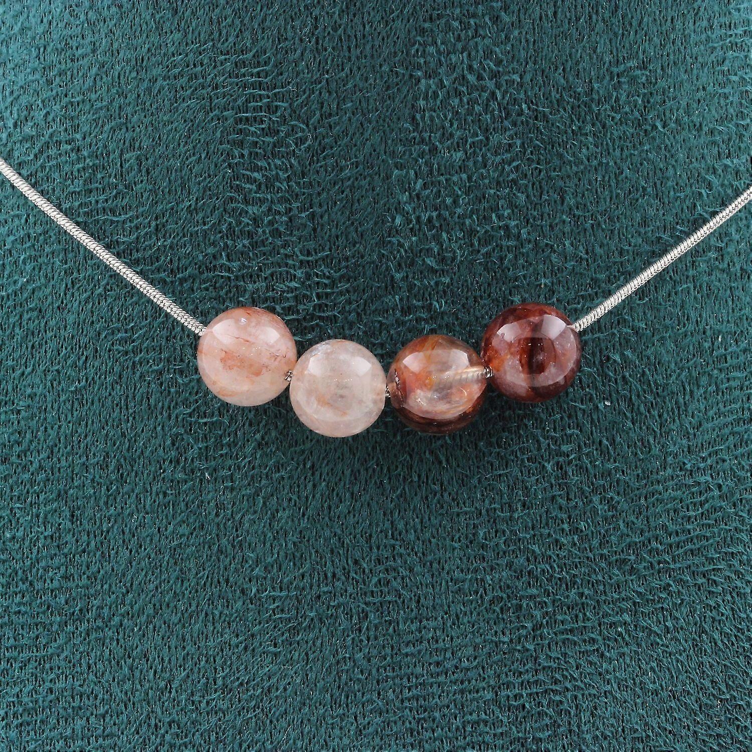 Necklace with 4 Hematoid Quartz beads from Madagascar 8 mm Stainless steel chain