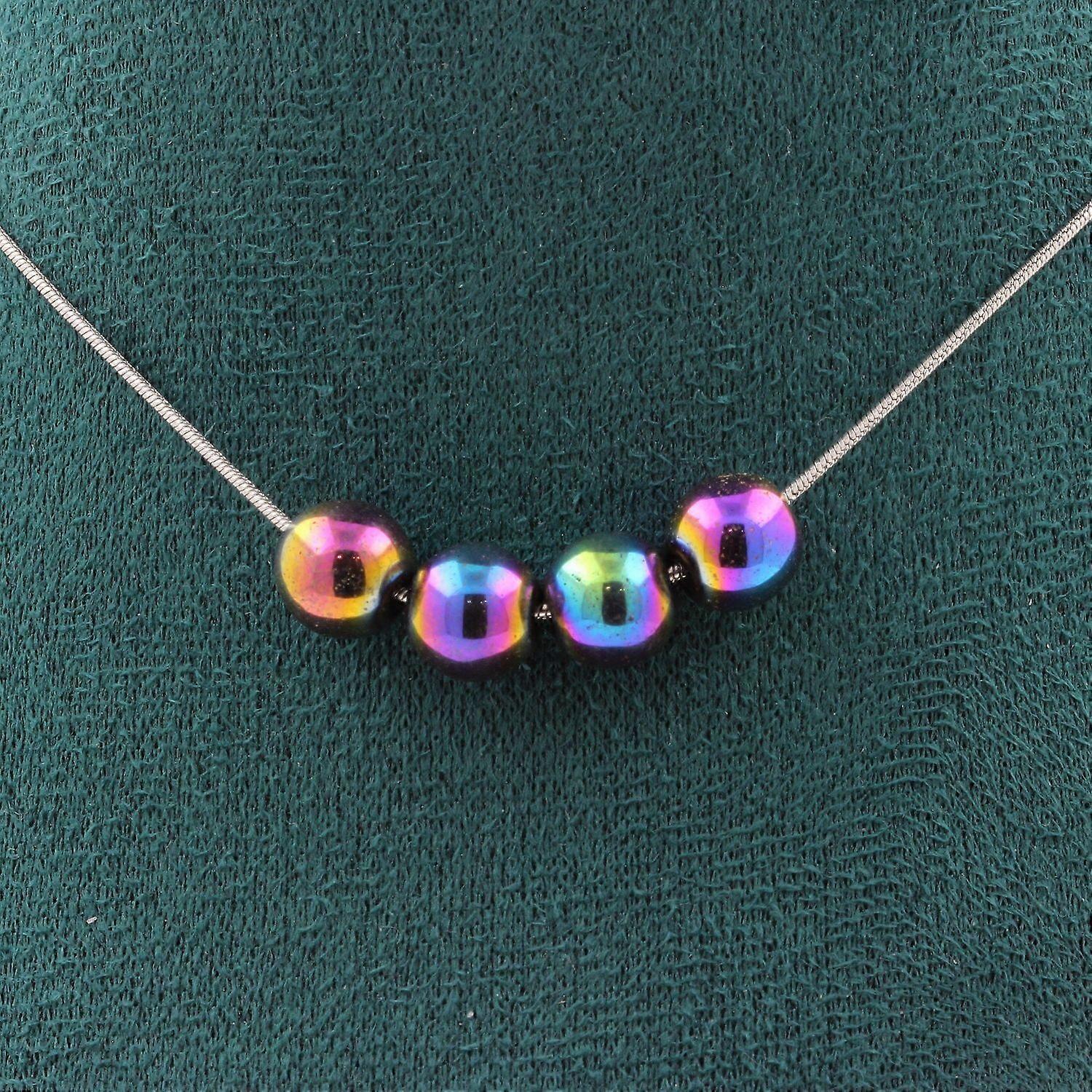 Necklace with 4 multicolored Hematite beads 8 mm, stainless steel chain