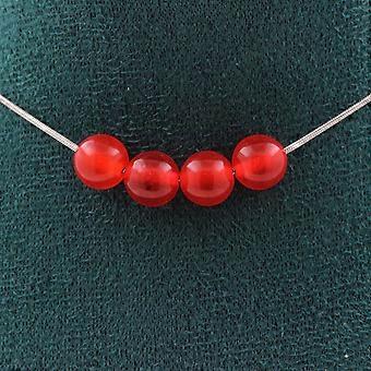 Necklace with 4 red chalcedony beads 8 mm Stainless steel chain